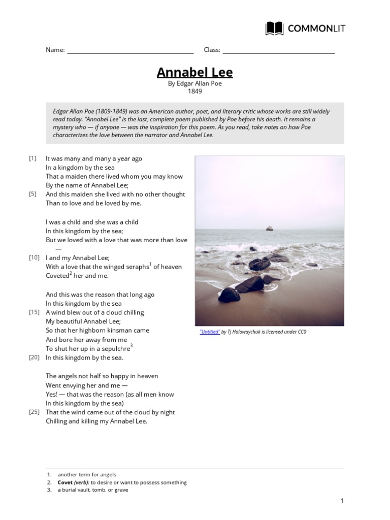 Annabel Lee By Edgar Allan Poe Lesson Plan